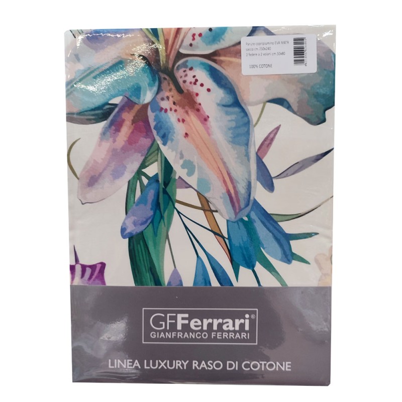 La trapunta Eva è un capolavoro di artigianalità e lusso prodotta in Italia. Realizzata in raso di cotone 300 fili e stampa digitale, imbottitura in poliestere 300gr/mq anallergico. La sua composizione in puro cotone garantisce confort e morbidezza, ottima qualità italiana.